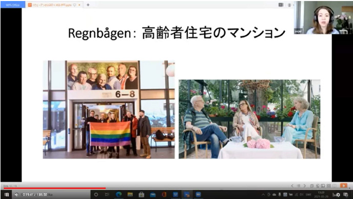 たとえば現在の高齢者世代のLGBT+の人々が安心して暮らせるように、世界初のLGBT+の人々向けの高齢者住居Regnbagen(Rainbow=虹)が開設されています。またソフィアさんからは、今のスウェーデンの若者たちの間では、セクシャル・アイデンティティーはアイデンティティーの1つではあるけれども、それだけを殊更に取り上げるということをしなくなっているというお話がありました。