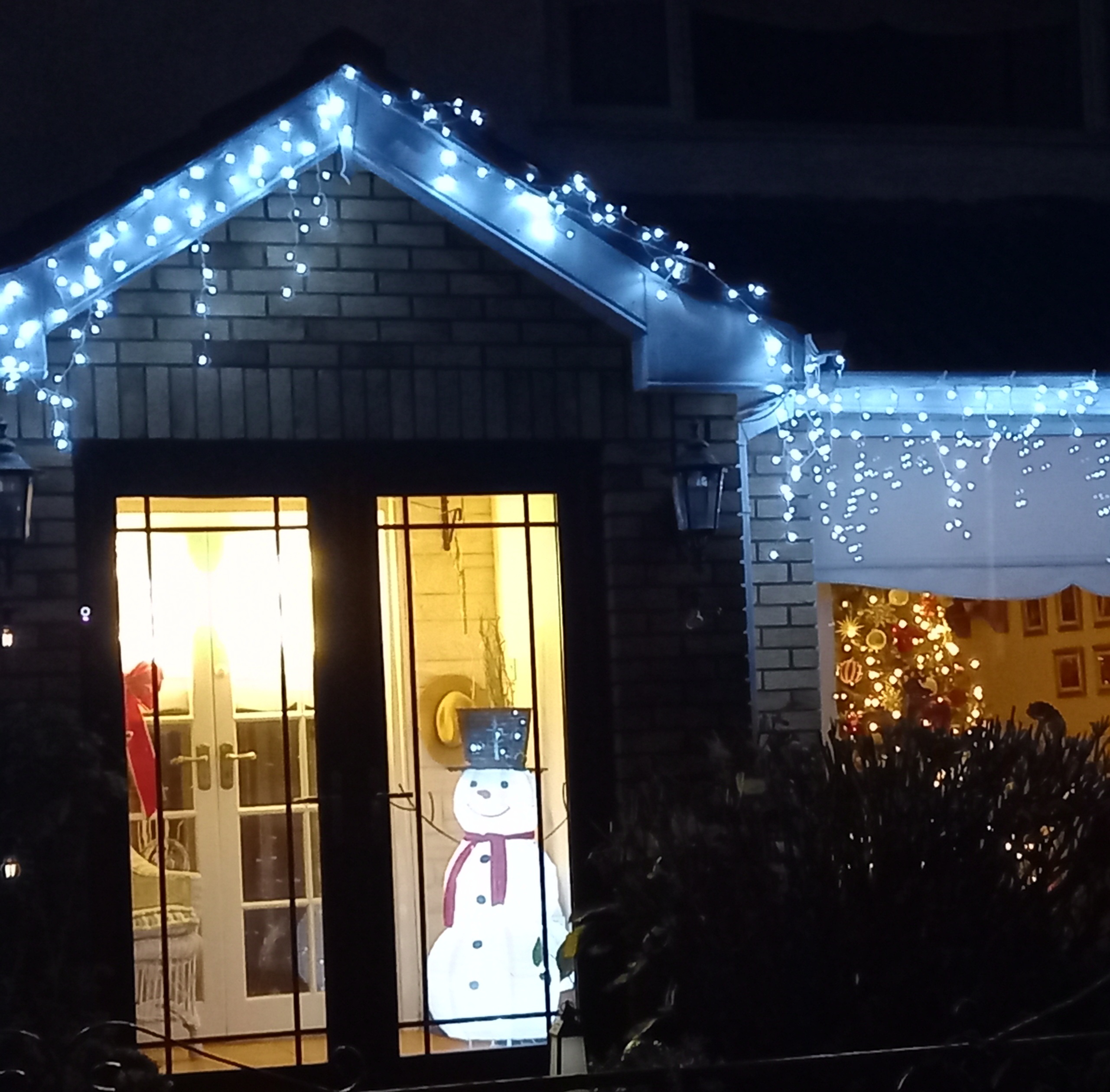 私にとってのクリスマスは、近所の家々が戸口や軒や窓辺に飾り付ける「豆電球の灯り」です。白や黄色やブルーの灯りは、冬至の日に向かってどんどん伸びてゆく長い夜を大いに慰めてくれるものです。雨が降っていなければ、夕食後のぶらぶら歩きをします。それぞれに工夫された灯りのデコレーションを眺めながら、これはやり過ぎだ、とかこれは趣味がいいとか、まあ勝手なことを言っています。軒から下がるつららを真似た飾りを見た時には、ホームシックになりました。やはり冬はふるさと、北海道のことを思い出す季節です。
