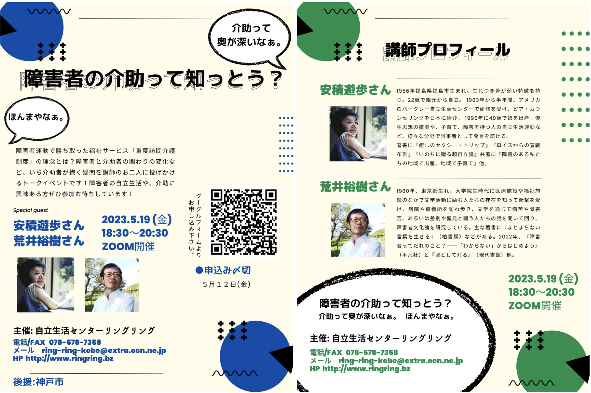 障害者運動で勝ち取った福祉サービス「重度訪問介護制度」の理念とは?障害者と介助者の関わりの変化など、いち介助者が抱く疑問を講師のお二人に投げかけるトークイベントです!障害者の自立生活や、介助に興味ある方ぜひ参加お待ちしています!